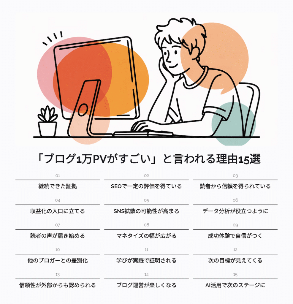 - 1.1 「ブログ1万PVがすごい」理由:1. 継続できた証拠