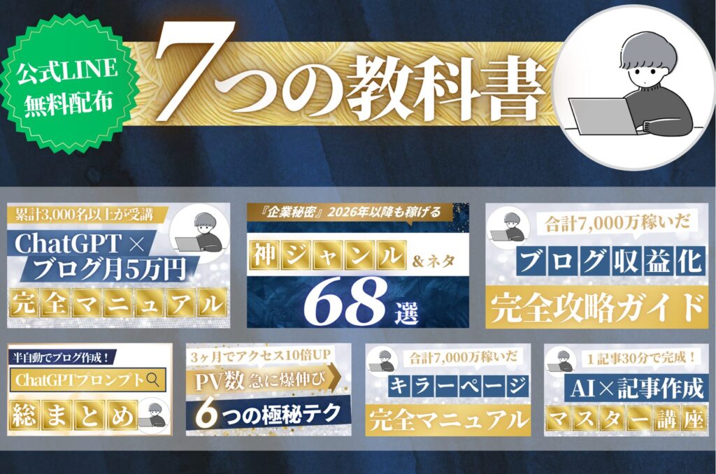 これまでに3,000名以上が受け取った「AI×ブログで稼ぐ教科書」の最高峰。
