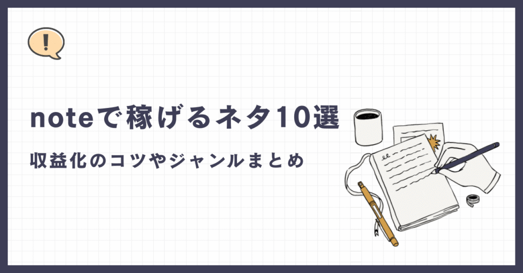 この記事では、noteで実際に稼ぎやすいネタ10選と、それぞれの特徴・ポイントをわかりやすくまとめています。